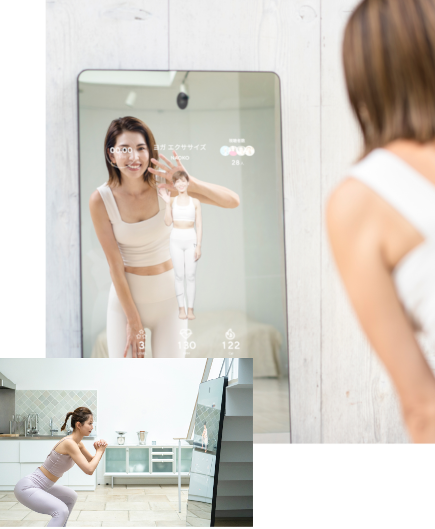 自宅にある『鏡』が望むサービスへの『入り口』になり、生活と健康活動をよりシームレスに、より自由にするサービスです。 「ミラーフィット」は空間の価値を最大限高めて、自分の部屋を新たなチャレンジの場に、そして世界中の仲間と繋がるコミュニティスペースに変える魔法の鏡です。 またIoTスマートデバイスとして、自宅のスマート家電と連携する将来も見据えます。未来はもうすぐそこに。「MIRROR FIT.」が叶える革新的なライフスタイルを体感してください。